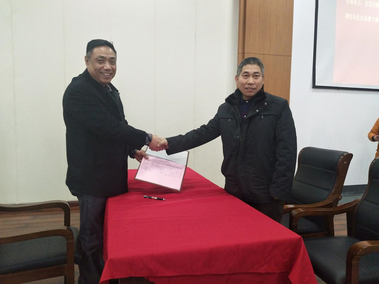 财务总监克佳先生进行《绩效考核任务书》的签约仪式