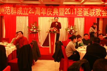 12月25日晚,我公司领导及全体员工和特邀嘉宾一起在星月大酒店举行20周年庆典暨2011圣诞联欢会。今年恰逢我公司成立20周年,下午大家就早早地忙碌了起来,将晚会现场布置得喜庆、热烈。四点三十分,晚会正式开始,首先由公司董事长范炳洪先生作了热情洋溢的致词,和大家一起回顾了范群20年来不平凡的历程,介绍了范群由小到大的创业过程及取得的成就。特邀嘉宾也分别发言,预祝范群的明天更美好。晚会上精心组织了一系列的精彩节目,激动人心的抽奖环节不时穿插其中,将晚会推向一个又一个高潮。不但加强了各部门同事之间沟通与交流,还增强大家团结协作意识。在这个欢庆的日子里,祝愿范群的未来更加辉煌!